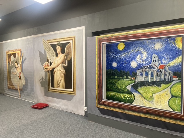 A festmények nem körbekerített kiállítási tárgyak, nincsenek zord teremőrök, akik ránk szólnak, ha túl közel merészkedünk egy-egy drága műtárgyhoz, netalántán szelfit készítünk a falon függő képpel. Sőt! Nincsenek drága műtárgyak, a mobilt pedig szinte kötelező kézben tartani.