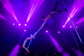 Az orosz Bamboo Act hengeperzs száma a Budapest Nemzetközi Cirkuszfesztiválon a Fővárosi Nagycirkuszban 2024. január 10-én