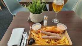 Az idén nyitott Crumbie Bistróra véletlenül akadtam rá, de olvasva a családias hangulatú egység bejáratánál felírt napi ajánlatot, miszerint 2400 forintos menü részeként kaphatunk itt sült kolbászt, kenyeret vagy sült krumplit és egy pohár sört, betértem. Eleve tetszett, hogy Budapesten sört tartanak csapon. A házigazda, Sütő Levente egyszerre séf, üzletvezető és résztulajdonos csapolta volna műanyag pohárba a kisüzemi főzetet, de szerencsére hamar meg tudtunk egyezni abban, hogy nem lévén üvegből készült söröspoharuk, borospohárban kapom majd. Nagyra értékeltem a rugalmasságot, találkoztam már az ellenkezőjével is nem egyszer. A kolbászhoz mustárt, a burgonyához egy majonézalapú BBQ ízesítésű mártást kértem. A saját recept alapján készített remek kolbászból kétfélét kaptam, sőt, az ízletes véres hurkából is került kóstoló a tálkára. A fő profil egyébként a rántott műfaj, legyen az hús, cukkini vagy camembert, hiszen a hely arra épít, hogy a rántott ételeket a gyermekek is szeretik. Imponáló, hogy a tömény italokat a magyar prémium szegmensből válogatták, legyen szó akár whiskyről vagy ginről. Szeretni való, személyességgel megtöltött, családias bisztró a Crumbie, szívből kívánunk Levente séfnek sok sikert hozzá!