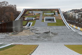Miközben több pályázó valóban egy óriási kapuépületet álmodott a helyszínre, Ferencz Marcelék ezt a formát „megfordították”, az épület tömegének 60 százalékát elrejtve a föld alatt. Mégis megteremtettek egy karakteres átlépési teret a kettős, egymás felé lejtő domboldalt képező grandiózus tetőkerttel, amely 21. századi megfogalmazásban kapcsolódik a Liget angolparki hagyományaihoz is – méltatta a tervet.