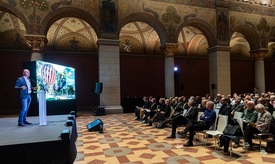 Sághi Attila, a Liget Budapest projekt megvalósításáért felelős Városliget Zrt. műszaki vezérigazgató-helyettese előadást tart a találkozón