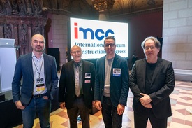 Baán László, a Liget Budapest projekt miniszteri biztosa, a Szépmûvészeti Múzeum-Magyar Nemzeti Galéria fõigazgatója, Brian Mandrier, az IMCC vezérigazgatója, David Greenbaum, az IMCC vezetõ testületének elnöke, múzeumtervezõ szakember és Sághi Attila, a Liget Budapest projekt megvalósításáért felelõs Városliget Zrt. mûszaki vezérigazgató-helyettese az International Museum Construction Congress (IMCC), rangos nemzetközi múzeumépítési szakmai találkozón a Szépmûvészeti Múzeum Román Csarnokában