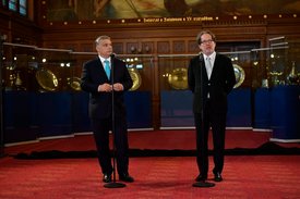 A miniszterelnök a bejelentés után bemutatta a sajtónak a Parlament Vadásztermében kiállított kincseket.
