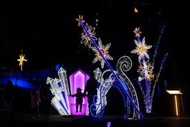 Fényinstallációk a Lumina Parkban a fővárosi Palatinus Strand területén a megnyitó napján, 2024. október 24-én