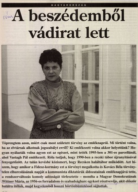 (A beszédemből vádirat lett – Matúz Gábor interjúja Wittner Máriával, Magyar Demokrata 2001/10., március 8.)