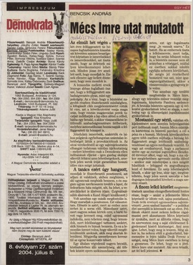 (Mécs Imre utat mutatott – Bencsik András vezércikke, Magyar Demokrata, 2004/27., július 8.)