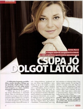 (Csupa jót látok – Fehérváry Krisztina és Szentei Anna interjúja Borbás Marcsival, Magyar Demokrata 2012/51-52., december 19.)