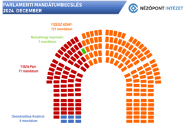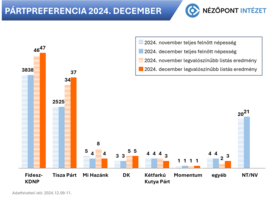 A Nézőpont Intézet decemberi felmérése szerint a Fidesz-KDNP legvalószínűbb listás eredménye 47 (2,6 millió szavazó), a Tisza Párté 37 (2,1 millió szavazó), míg a DK-listájáé 5 százalék lenne „egy most vasárnapi választáson”.