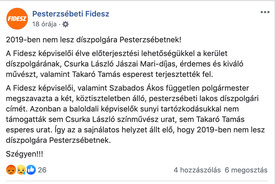 A hír a pesterzsébeti Fidesz Facebook-oldalán jelent meg. A posztban azt írták: a Fidesz képviselői, valamint Szabados Ákos független polgármester megszavazta a két köztiszteletben álló pesterzsébeti lakos díszpolgári címét.