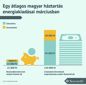 Ha márciusban piaci alapú árszabályozás működött volna, a napokban megérkező áramszámlák 4,3-szeresükre, egy átlagos háztartás esetében 9 ezer forintról 40 ezer forintra növekednének – írta a Századvég. Hozzátették: a gázhoz hasonlóan a fogyasztást a villamos energia esetében is leginkább a háztartás létszáma befolyásolja; egy egyedül élő jelenlegi 6 ezer forintos számlája 26 ezer forintra, egy nyolctagú nagycsalád számlája pedig 18 ezer forintról 76 ezer forintra növekedne.