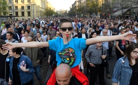 Amikor a tömeg eleje a Magyar Nemzeti Múzeumnál járt, a vége akkor indult el a Fővám térről.
