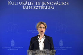 Hornung Ágnes, a Kulturális és Innovációs Minisztérium családokért felelős államtitkára sajtótájékoztatót tart a Lakás- és Ingatlanpiaci Tanácsadó Testület ülése után a minisztériumban 2024. április 17-én