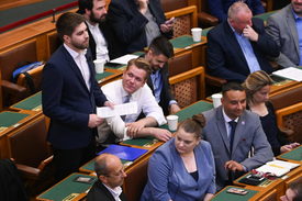 Tóth Endre, a Momentum képviselője napirend előtt szólal fel az Országgyűlés plenáris ülésén 2022. május 16-án