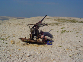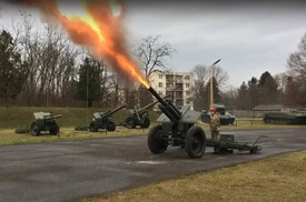 – Igen, visszarepülve kissé az időben, a kék huszár-parolit piros tüzér színűre cseréltük. Hamar rájöttem, hogy az én és bajtársaim életkörülményeivel nem tudjuk a huszárságot hitelesen és fenntarthatóan megjeleníteni. Viszont emlékeztem rá, hogy sorkatona koromban, 1992 karácsonyára kaptam egy doni visszaemlékezést – Szigeti Lehel zászlós „Donon Innen Donon túl” – címmel. Ebből a könyvből ismertem meg a 4 cm-es 36M légvédelmi gépágyút. Ez alapján a 2000-es évek elején határoztam el, hogy a tüzérséget kell megjelenítenünk. Ráadásul a löveget, ha nem használjuk, lezsírozva el lehet tenni, nem úgy, mint az élő lovat, amit akkor is lovagolni kell, ha nem megyünk vele sehova. Így azután, egy gépágyú beszerzése vált szükségessé.