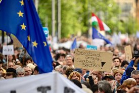 A felsőoktatási törvény módosításának visszavonását követelték a Közép-Európai Egyetem (CEU) „ellehetetlenítése” elleni, Parlament előtt tartott tüntetésen résztvevők. A demonstrálók arra hívták fel Áder János köztársasági elnököt, hogy ne írja alá a jogszabályt.