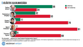 A kutatásból kiderült az is, hogy Puzsér Róbertet a szavazók tizenegy, a „nemzeti baloldali” Thürmer Gyulát hat, Berki Krisztiánt pedig egy százalékuk nevezte alkalmas jelöltnek – tették hozzá.