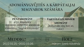 Az adományokat március 6-án, 18 óráig várják, és „ha a nemzetközi helyzet engedi, akkor március 7-én juttatnánk el személyesen Kárpátaljára”.