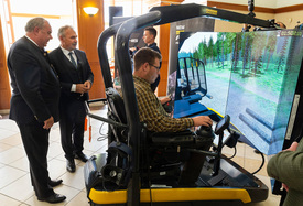 Az államtitkár beszélt arról is, hogy az erdészeti szimulátor olyan speciális erdészeti gépek kezelését tanítja meg a diákoknak, amelyekkel a gyakorlati életben találkozhatnak, a favizsgáló pedig a fa szerkezetét vizsgálja anélkül, hogy azt roncsolná.