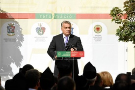 A miniszterelnök megjegyezte: 500 éve a reformáció volt a válasz az utat tévesztett Európa számára. Feltette a kérdést: van-e „református gyógymódja” Európa mostani kulturális elernyedésének, gazdasági térvesztésének, és demográfiai zsugorodásának, az idegen kultúrákkal szembeni önfeladásnak?