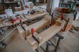 A műhelyben olykor a fafaragó is megfordul. A legelső alkalommal a mester kérte a megbízót, vigye el hozzá a megmunkálandó tárgyat, ám amikor kiderült, hogy egy 2500 literes hordóról van szó, belátta, hogy neki kell házhoz mennie. Bár nem ez volt az első extrém küldetése, és azt is tudta, hogy mire vállalkozott, amikor meglátta a munkadarabot, tátva maradt a szája. Ez a reakció pedig nem ritka. Mi is kikerekedett szemmel nézzük azt az erjesztőkádat, ami Izraelbe készül, pedig annak a befogadóképessége csupán 5000 liter, vagyis fele akkora, mint Várda Tibor eddig készített legnagyobb hordói. Az ilyen edényben – már ha annak lehet nevezni – általában szőlőt erjesztenek, de ecet készítésére is alkalmas, vörösfenyőből készült változatában pedig gabonát szoktak érlelni, ami a whisky alapanyaga.