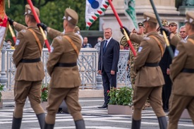 Benkő Tibor honvédelmi miniszter az MH Altiszti Akadémián idén végzett honvéd altisztek ünnepélyes avatásán Budapesten, a Hősök terén 2021. július 17-én