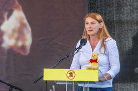 Baranyi Krisztina felszólal a Fudan Egyetem elleni tüntetésen