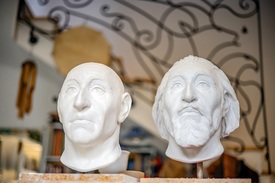 – Professzor úr azzal keresett meg – nyitja a régi szőlőben a lakásuk mögé épített műterme ajtaját –, hogy szeretné, ha rekonstruálnám III. Béla király és felesége arcát, segítségképpen pedig kezembe adta, pontosan itt, ahol most állunk, a két koponyáról készített CT-felvételeket.
