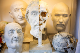 Ahány koponya, annyiféle arc. Például egy zalavári templomban talált honfoglalás kori harcos robusztus ábrázatát felszerkeszteni, majd ráépíteni a koponyájára rengeteg előtanulmányozással, összehasonlítással, méricskéléssel, röviden tudományos és művészi munkával jár, ezért is telik hónapokba, mire elkészül.