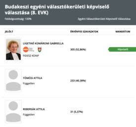 Az időközi választást a szavazatok több mint 50 százalékával a Fidesz-KDNP jelöltje, Ligetiné Komáromi Gabriella nyerte.