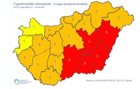 Győr-Moson-Sopron és Vas vármegye kivételével vasárnapra az ország többi részén másodfokú (narancs) figyelmeztetés van érvényben a magas középhőmérséklet miatt, ezeken a területeken várhatóan 27 fok felett alakul a középhőmérséklet vasárnap.