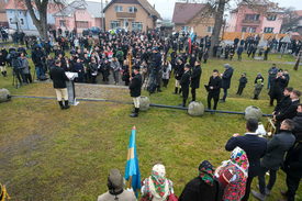 Madéfalva, 2023. január 7. Résztvevõk a madéfalvi veszedelem 259. évfordulóján tartott megemlékezésen a vérengzés emlékmûvénél, a székelyföldi Madéfalván 2023. január 7-én.