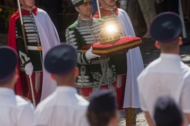 Az NKE Rendészettudományi Karának 168 végzett hallgatója a Szent Korona másolata és a történelmi zászlók előtt, a miniszterelnök mellett Pintér Sándor belügyminiszter, Benkő Tibor honvédelmi miniszter és a tábornoki kar jelenlétében tette le a tiszti esküt.