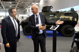 Palkovics László innovációs és technológiai miniszter (b) a Globális Különleges Műveleti Erők (GSOF) Európa nemzetközi konferenciáján megtekinti a rendezvényhez kapcsolódó kiállítás magyar standját Budapesten, a Hungexpo H pavilonjában 2022. október 5-én
