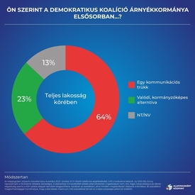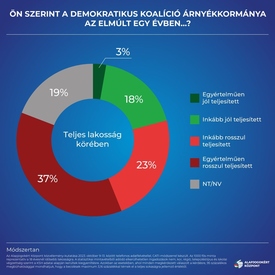 A magyar választók közel kétharmada úgy véli, Gyurcsány Ferencék árnyékkormánya nem több egy kommunikációs trükknél – derül ki az Alapjogokért Központ közvélemény-kutatásából.A magyar választók hatvan százaléka elégedetlen a Demokratikus Koalíció árnyékkormányával, szerintük az elmúlt egy évben rosszul teljesített Gyurcsány Ferenc politikai formációja.