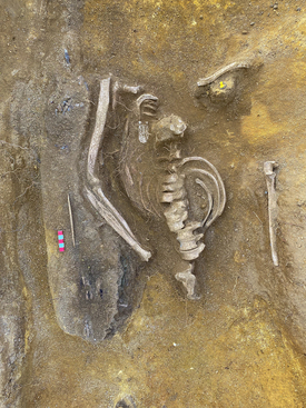 Annak idején a korabeli szokásoknak megfelelően a harcos férfi lovát is a sírba helyezték. Érdekesség: a tarsolylemez először nem mutatta meg magát, még a régészeknek sem, csak egy kisebb fémrész látszott belőle, nem volt egyértelmű, mi lehet az. A földdel együtt emelték ki a sírból, és csak később derült ki, hogy egy tarsolyra és az azt fedő lemezre leltek. Maga a bőrtarsoly is megmaradt, benne tűzcsiholó vasat, alatta pedig egy selyemmaradványt találtak a szakemberek. Nyilván itt is az a bizonyos már említett kémiai fémhatás dolgozott.