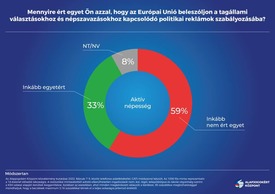 A február 7-9. között rögzített adatokból kiderült, hogy a választójogukkal élni szándékozó megkérdezettek abszolút többsége, 59 százaléka utasította el azt, hogy az Európai Unió beleszóljon a tagállami választásokhoz és népszavazásokhoz kapcsolódó politikai reklámok szabályozásába. A megkérdezettek csupán 33 százaléka mondta azt, hogy egyetért egy ilyen uniós hatáskörbővítés lehetőségével – olvasható a kutatásban.