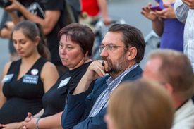 Komáromi Zoltán, az Együtt egészségügyi szakpolitikusa az Õszintén az Egészségügyrõl Akciószövetség az Eleven emlékmû nevû csoport által, az egészségügyért szervezett vitafórumon és virrasztáson a Parlament elõtt, a Kossuth téren 2015. július 1-én.