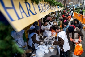 A Magyarországi Krisna-tudatú Hívők Közössége is hasonló gondokról számolt be az állami normatívával kapcsolatban. Fodor Kata sajtóreferens szerint sokszor az államilag finanszírozott létszámon felül szolgálják ki a szükségben élőket, tehát ha valaki után nem tudnak támogatást igényelni, akkor is kap ellátást egyéb forrásból. Azt látják, hogy akik hozzájuk járnak, minden tekintetben igénylik a szolgáltatást, és szervezetüknél még több ételre is volna igény, hiszen folyamatosan jelennek meg újabb és újabb nélkülözők a látókörükben. Hétvégén például csak rendkívül kevés szervezet oszt ételt.