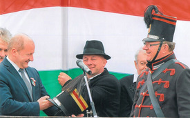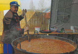 Vér János: 1953. április 1-én született Cegléden. Szakmája autószerelő, foglalkozása mezőgazdasági gépkereskedő, de katonai hagyományőrző körökben mint szakácsot is tisztelik. Társszerzője az Aranyszarvas földjén című ismeretterjesztő könyvnek. A romániai forradalom idején az elsők között szállított teherautón élelmiszert Erdélybe. Rendezője az április 4-i tápióbicskei tüzérkonyha programoknak, s e napon a seregek főszakácsa. Gasztronómiai rendezvények jeles szereplője a magyarlakta területek széles sávjában. A Világ Magyarságának Gasztronómiai Szövetségének elnöke is. A Kárpát-medence-szerte meghonosodott Magyarok Kenyere mozgalom kezdeményezője és zászlóvivője. Magyarság iránti elkötelezettsége az anyaországban, a Felvidéken, Erdélyben és a Délvidéken is olyan programok szervezésére, olyan adományok ajándékozására ösztönzik őt, amelyek a határon túli és az anyaországi magyarság összefogását erősítik, úgy a Nemzeti Összetartozás Napján, mint az év többi részében. A Magyar Ezüst Érdemkereszt tulajdonosa, a Bitskey Gáspár Hagyományőrző Tüzércsapat alapító és oszlopos tagja. Ő az az ember, akinek a haza szolgálatában végzett dicséretes tetteit itt felsorolni teljességében nem ajánlott, mert annak mértéke módosítaná a Magyar Demokratában megjelenő anyagokból később összeálló könyv tervezett terjedelmét. A képen Vér János a tápióbicskei csatabemutató seregeinek vacsoráját főzi.