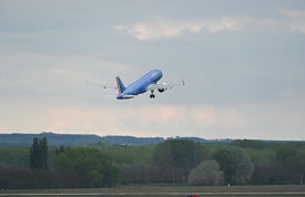 Ferenc pápa repülõgépe távozik a Liszt Ferenc-repülõtérrõl 2023. április 30-án.