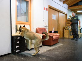 A kiválasztás első lépéseként tesztelik a kutyákat: a tenyésztőktől származó, 10 és 36 hónap közötti ebeknek egy meghatározott gyakorlatsort kell végrehajtaniuk. Ha ez sikerül, irány az állatorvos. A doktor feltérképezi a páciens csontozatát, ízületeit, illetve belgyógyászati vizsgálatot végez, és ha az egészségügyi ellenőrzés sem jelez akadályt, jöhet a kiképzés. Ennek időtartama attól függ, hogy az illető kutyát milyen munkára szánják. A kábítószer-, cigaretta- és bankjegykereső, járőr vagy nyomkövető eb felkészítése 14 hétig tart, a duálképzés 16 hetet vesz igénybe, a módszer pedig nem más, mint a játék. A kiképzés kezdetén elrejtenek egy labdát, amit a kutyának meg kell keresnie. Idővel aztán az áhított zsákmány mellé egy csomag kábítószert is tesznek, hogy az állat megszokja annak a szagát is. Később már csak a tiltott szert dugják el, aminek a felderítéséért jutalom jár, mégpedig az imádott labda. Vagyis a közhiedelemmel ellentétben a négylábú detektívek nem azért tesznek tűvé mindent, mert drog hatása alatt állnak, és elvonási tüneteiket szeretnék enyhíteni, hanem mert egész egyszerűen szórakozásként fogják föl a munkát, és mindennél jobban vágynak a csempészáru kézre kerítéséért járó dicséretre, simogatásra.