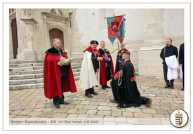 A Zsigmond király által 1408-ban létrehozott lovagi társaság eszméit szem előtt tartva, az Aranykard Sárkányos Lovagok Társasága lovagi avatását a Bélapátfalvi Apátságban tartotta, annak emlékére, hogy Zsigmond király és a sárkányos lovagok 1412-ben, az ott lévő emléktábla szerint ott jártak. Ez a kép azonban Pozsonyban, a Szent Márton Koronázó Templom előtt készült, Poprócsi Hunor Botond lovaggá avatásán. A szertartást levezeti lovag Poprócsi Attila Barnabás