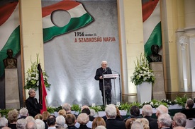 Ami akkor történt, azt a külföld, a történelmileg nálunk szerencsésebb Nyugat hol értette, hol nem – jegyezte meg a rektor, aki szerint napjaink Európájában „csak úgy maradhatunk hűek Magyarországhoz, ha soha és sehol nem áruljuk el, amiért a magyar harcosok az életüket adták”.