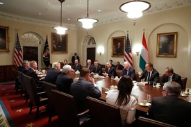 Az elnök és a miniszterelnök felszabadult, őszinte hangulatú megbeszélést tudott tartani – mondta el Szijjártó Péter, aki maga is részt vett a találkozó szűk körű, első részében, majd a magyar és az amerikai küldöttség plenáris tárgyalásán.
