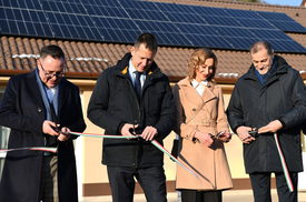 Mile Ferenc, a Baptista Tevékeny Szeretet Misszió elnöke, Fülöp Attila, a Belügyminisztérium gondoskodáspolitikáért felelõs államtitkára, German Gabriella, a Baptista Tevékeny Szeretet Misszió Hajdúböszörményi Szociális Szolgáltató Központjának intézményvezetõje és Papp János, a Magyarországi Baptista Egyház egyházelnöke (b-j) a Támogatott lakhatás kialakítása és szociális alapszolgáltatások fejlesztése Hajdúböszörményben elnevezésû projekt záró rendezvényén, a Bethlen Gábor utcában felújított lakóotthon átadásán Hajdúböszörményben 2023. december 8-án.