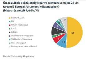 A felmérés kitért azon csoport pártpreferenciáira is, akik az EP-választáson részvételüket biztosra ígérték. Ezen a bázison a kormánypártok előnye stabil, a részvételüket biztosra ígérők 51 százaléka voksolna jelenleg a Fidesz-KDNP-re, míg az az MSZP-Párbeszéd 7, a Jobbik 9 százalékon, a DK pedig 11 százalékon áll – írta a Századvég.