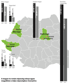 A 2021-es romániai népszámlálás adatai sok érdekességgel szolgálnak a magyarság szempontjából, és egyben sajnos szomorú eredménnyel is. Míg 2011-ben 1 227 623 magyar élt a szomszédos országban, 2021-ben 18,4 százalékkal kevesebb, 1 002 151 fő. Szomorú eredmény, ugyanakkor látni kell azt is, hogy míg Románia egész területén (tehát Óromániát, az úgynevezett Regátot is ideértve) a magyarok aránya 6,5 százalék volt, ez mostanra is csupán 6 százalékra csökkent. Vagyis nemcsak a magyarság lélekszáma mérséklődik, hanem a teljes lakosságé, a többségi társadalomé is.