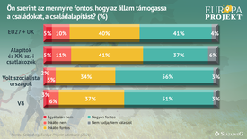 Jól látható, hogy ebben a kérdésben az eltérés elsősorban az EU keleti tagjai (Görögország és Ciprus mutatószámai a volt szocialista országokéhoz hasonulnak) és az EU nyugati és északi tagjai között tapasztalható. Ebben a kérdésben a visegrádi csoport mutatója az EU átlag felett helyezkedik el (88 százalék), ami kevéssel elmarad az összes volt szocialista országra jellemző adattól. Az összes kutatásba bevont ország közül Magyarországon gondolják legnagyobb arányban, 96 százalékban, hogy a családok és a családalapítás támogatása fontos társadalmi kérdés.