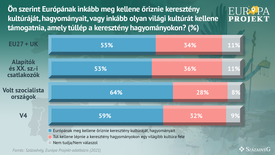 Az Európát érintő migrációs válság, kiegészülve a posztmodern irányzatok keresztény-konzervatív és közösségi értékeket megkérdőjelező, az individualizmust akár szélsőséges formában is értelmező törekvéseivel kulturális jellegű törésvonalakat hoztak a felszínre. A kutatásból kiderül, hogy a volt szocialista országok polgárai, azon belül a visegrádiak is a régi tagoknál lényegesen nagyobb arányban ragaszkodnak a keresztény alapú hagyományok és kultúra megőrzéséhez.