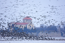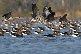 – 1989-ben, amikor a tatai Öreg-tavat Közép-Európa egyik legjelentősebb madárgyülekező helyeként felvették a ramsari egyezménnyel védett vizes élőhelyek jegyzékébe, még a vetési ludak adták a nemzetközi rangot ennek a vidéknek – mondja Musicz László. – A 2000-es évektől azonban egy érdekes szerepcsere figyelhető meg, a klímaváltozás hatására ugyanis ez a madárfaj már nem érkezik nagy létszámban Közép-Európába, hanem a kontinens északabbi tájain marad. Megérkezik viszont, sőt a vetési lúddal szemben dominánssá vált a nagy lilik, amely korábban a vadlúdtömegeknek viszonylag kisszámú szereplője volt. Ezek a madarak szeretik hazánk klímáját, leginkább fagypont körüli hőmérsékleten érzik jól magukat – tájékoztat Musicz László.
